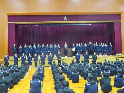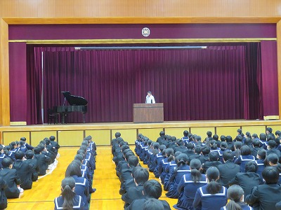 今日は12月最初の朝礼でした。毎月初めの朝礼では、普段なかなか歌う機会の少ない「校歌」を歌います。この歌声で、12月の冷え冷えとした体育館が少し暖まった感じがしました。