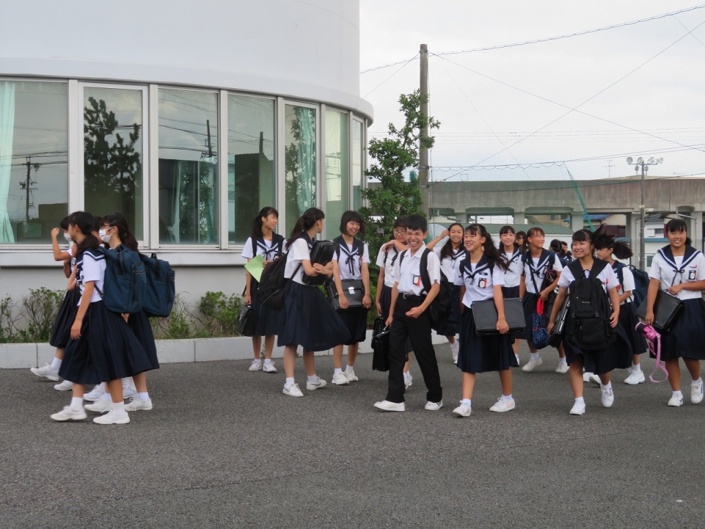 今日は、海部地区の小中学校の先生たちの勉強会があるため、給食を食べてから下校となりました。季節外れの暑さの中、前期末の定期考査も終わり、どことなく疲れがみえる生徒たち。午後からの時間を有意義に活用してほしいと思います。特に心身をゆっくり休め、明日からの学校生活の活力につながるとよいと思います。