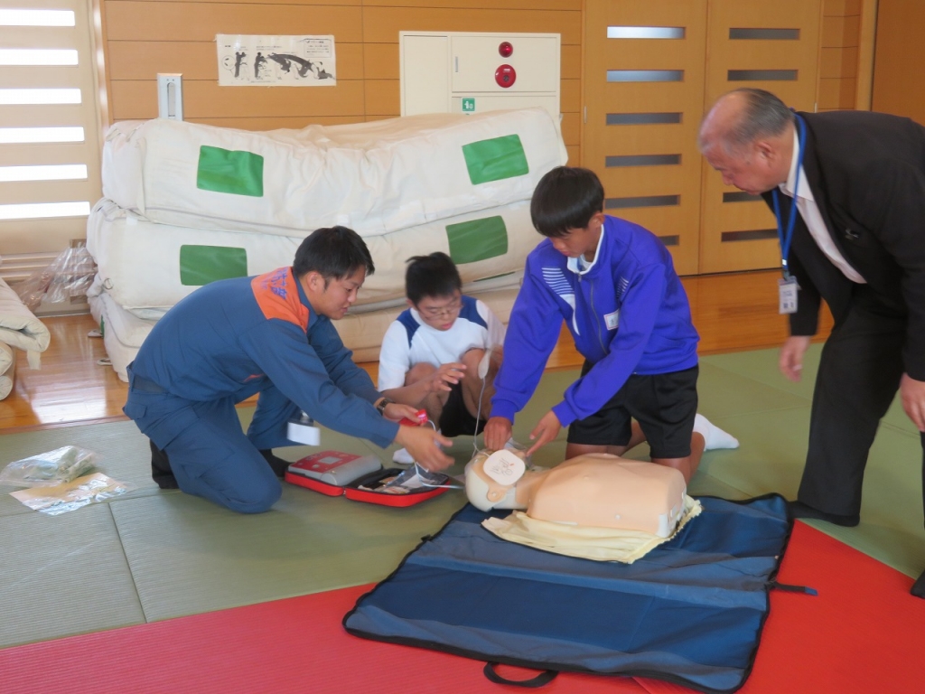 生徒たちは、慣れない手つきながらも「命に関わること」として、真剣に取り組むことができました。実際にはどこまでのことができるのか難しいところはありますが、この「講習会を受けたこと」が、「万が一」の場面に遭遇した時の「手助け」になってくれることと思います。