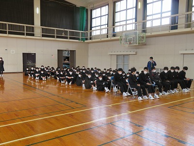 今日の1・2時間目には、1・2年生が初めての卒業式練習を行いました。