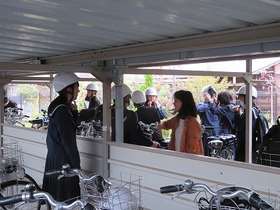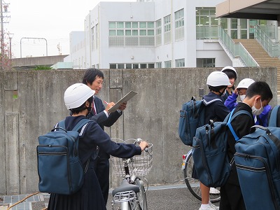 その一方で学校では、下校時に「ヘルメットのあご紐チェック」をしています。「ただ頭に乗せているだけ」に近い状態のヘルメットのかぶり方をしている子がちらほら見られるということで、先生方が正しく着用する啓発を進めてくれています。