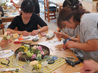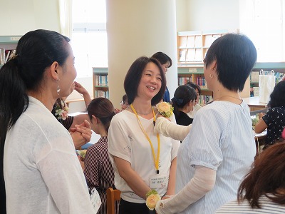 今日が10時から、図書室で「PTA作品作り講習会」が行われました。今年は講師に吉田友香さん(Raviluce代表)をお招きして「カチューシャ作り」を行いました。PTA生活・文化委員の方々も事前に制作を体験し、今日は参加者の皆さんにアドバイスをして回っていただくなど、よりよい会になるようご尽力いただいたおかげで、皆さんが和気あいあいとした雰囲気の中、素敵な作品を制作していました。