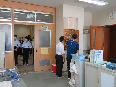 特に今年の校内探検は、感染症対策の意識が高いためもあり、今までのどの年よりも静かに移動していました。また、説明を聞く際にも、可能な範囲でお互いに距離を開けて聞くことを意識して取り組んでいました。