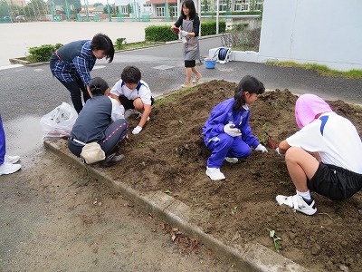 本校の校舎南側の一角に、小さな小さな畑があります。