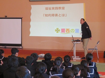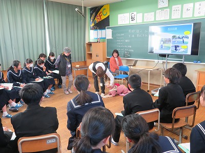 小学校でも福祉実践教室を行ってきた子どもたちですが、中学生になってから学ぶ今回の授業では、より広い視点から「幸せな社会づくり」について考える機会になってくれたらと思います。