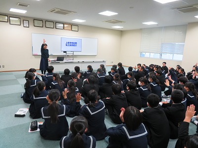 これは、3月に実施を予定している「上級学校訪問」に向けた事前の進路学習の様子です。3年生は今の時期、いよいよ私立高校の推薦入試受験者も決まりつつあり、進路決定に向けて自分の「道」がかなり具体的になりつつあります。その1年前にいる2年生ですが、そろそろ自分の未来について具体的に考え始める時期にきています。