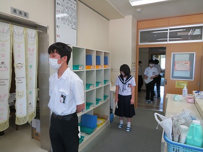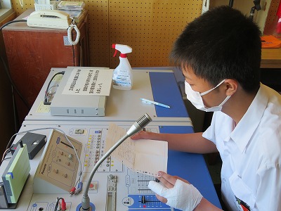 いつもの選挙であれば体育館に集まって、仲間の前で演説をする「立会演説会」を開催して投票をするのですが、この状況の中で安全面に配慮をして、校内放送での演説となりました。また窓を開け放って換気した放送室に入る候補者が入れ替わるたびに、毎回マイクも消毒ををして演説をしてもらいました。