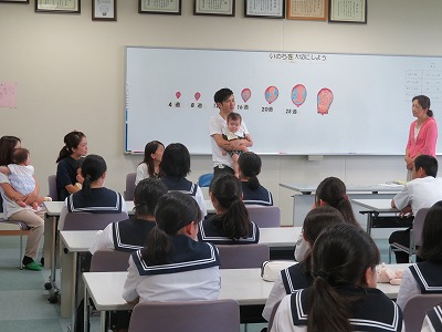 今日の2時間目は、2年B組の子たちを対象に養護教諭が「いのちの授業」を行いました。5組の親子、市の保健士さんにお越しいただき、「妊娠が分かった時の気持ち」「お腹の中にいるときの気持ち」「初めて抱っこしたときの気持ち」などを、直接お父さんやお母さんに話してもらいました。