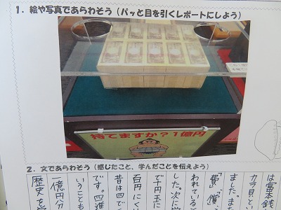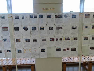 この掲示は、1年生の校外学習のまとめでした。それぞれの子が、自分が見学した場所について自分なりにまとめていて、見ていても個性が感じられて楽しいものになっています。