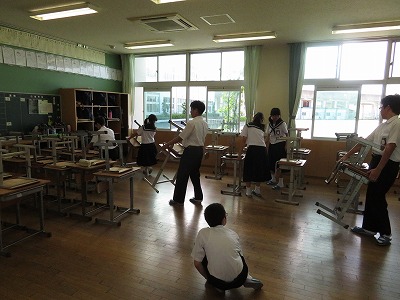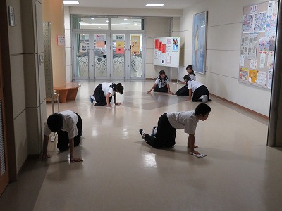 全校朝礼では、校長先生が夏休み中に同窓会に出席したことから感じた中学校生活のかけがえのなさについて話してくださいました。また、朝礼後には9月からの学校生活が気持ちよく始められるよう、全校で清掃にも取り組みました。
