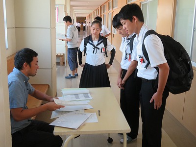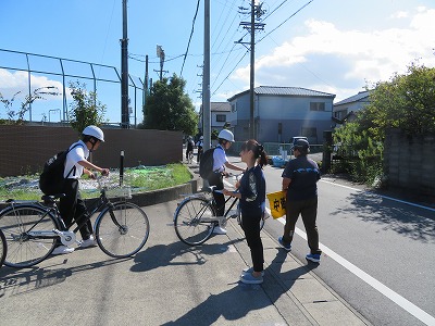 過ぎていった台風の影響か、とても強い風が吹く午後、2年生の子たちがそれぞれのグループに分かれて出かけてきました。今月の29日から3日間かけて行う職場体験学習に向けて、それぞれのグループがお世話になる事業所に直接出向き、ご挨拶とともに、体験に際しての注意事項などを聞いてくる「事前訪問」の出発です。