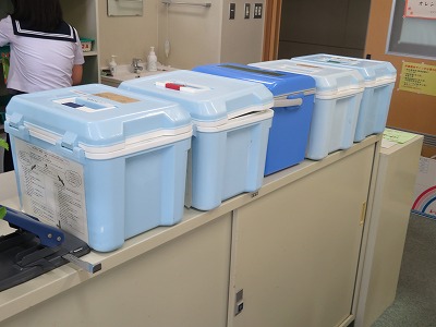 今日の昼には、職員室にたくさんのクーラーボックスが並んでました。