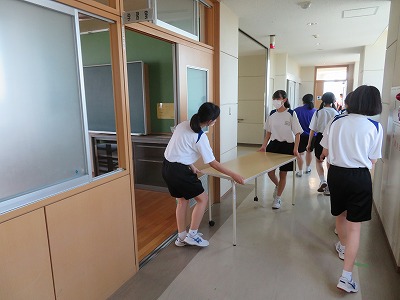 先輩たちが先生からの話を聞いている間に、室内の物品を移動する後輩たちの様子も見られました。