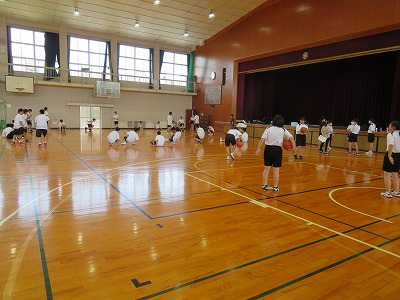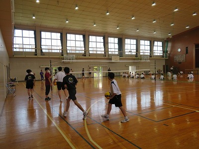 体育館では、先生からの説明を聞くと、各競技の特性に応じた軽めの活動をしていました。今日は3つの部活が一堂に体育館に集まっていましたが、これからはバレー部ができるだけ隣接する総合体育館を利用し、密を避けた環境作りを進めます。