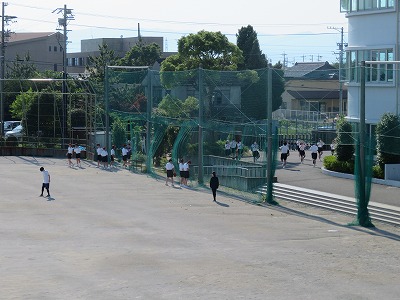 校舎内でミーティングを終えたいくつかの部は、早速外に出て身体を動かしたり、練習場所の準備をしたりしていました。