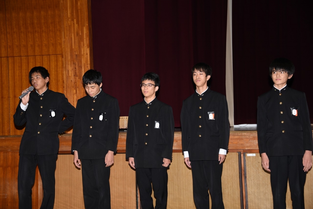 壮行会の中で、男子の主将が「個人で限界を超えるのではなく、チームとして限界を超えたい」という話をしました。女子の主将は1年生ながら、「これから2年生、3年生へとつながるような走りをしたいです」という話をしました。この二人の話を受けて、生徒会長が「想いをタスキにこめ、つないでください」という内容で話をしました。まさに、チーム一人一人の想いをタスキという形にかえてつなぐ駅伝のすばらしさを、3人の生徒たちが語ってくれた壮行会になりました。