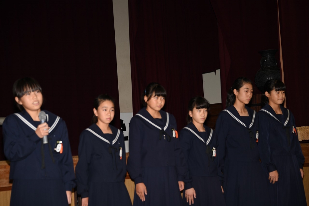 明日、11/2(土)は海部地区の駅伝大会です。大会に先立ち、体育館で壮行会が行われました。駅伝部の生徒たちは、朝夕の短い時間の中で練習してきました。