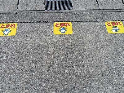 ちなみに西門から道路へ出る足元に、いくつも描かれている「とまれ」マーク。子どもたちが臨時休業している間に、何人かの先生たちが地道にペンキで色を塗り直して鮮やかに見えるようにしてくれました。