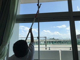 また、教室の天窓も開けて換気をしていますが、高い場所の開閉は大変なので、楽に開閉できる棒を校長先生が作ってくださいました。とても開けやすくなって、大喜びでした。