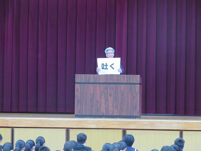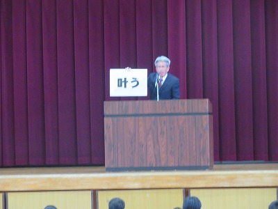 さて、今日の朝礼では、校長先生から1年の始まりにあたって、「吐」という漢字を「口から+と-の言葉を出す」と捉え、マイナスの言葉をなくすと「叶」になるという分かりやすい例示を基に、「ポジティブな言葉」を使うことによるプラスの作用についてお話がありました。