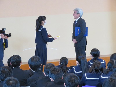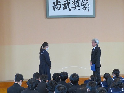 かけがえのない最後の2時間、まだ来週に卒業式を控えている3年生は「学年集会」を行いました。