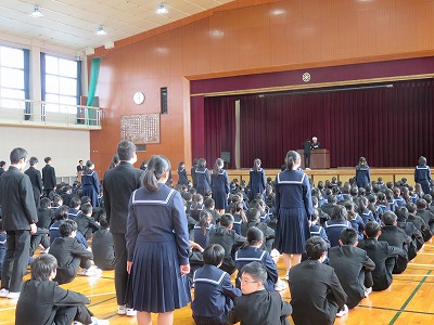 表彰を受けるたくさんの子たちがいました。今日の伝達表彰は書写コンクールの表彰と、夏休みの宿題だった生徒指導ポスターの表彰でした。ちなみに書写コンクール作品展は昨日と一昨日に津島市で行われました。