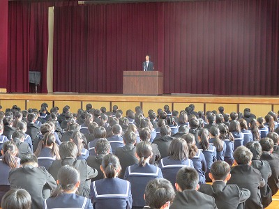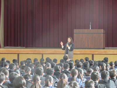 養護教諭からは、インフルエンザ感染の注意喚起がありました。今年の傾向としては、罹患しても熱が低く、インフルエンザと気付かないケースが多いようです。予防策の中でも、特に手洗いの励行について具体的に話がありました。「微熱がある」という場合は安易に考えずに、医療機関への素早い受診と感染拡大の防止にご協力をお願いします。