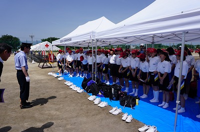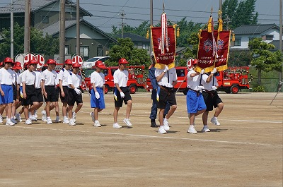 1年生の代表20名が少年消防クラブとして消防団の観閲式に参加しました。