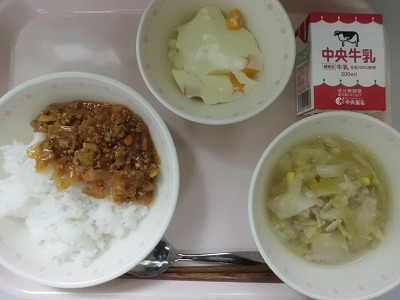 ごはん 牛乳 ★愛西れんこんしゃきしゃきうまドライカレー 野菜スープ