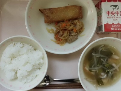 ごはん 牛乳 愛知の野菜入り春巻 チャプチェ 中華スープ