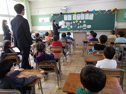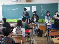 最初に着任式で新しくお見えになられた先生方よりご挨拶をいただきました。詳しくは学校だよりに掲載しておりますので、そちらをご覧ください。