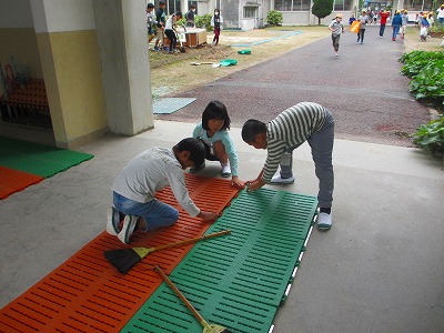掃除の時間の様子です。膝を折って、腰を曲げて頑張っている子どもたちの姿が、いろいろな場所で見られました。みんなでさらにきれいな学校にしていきましょう。