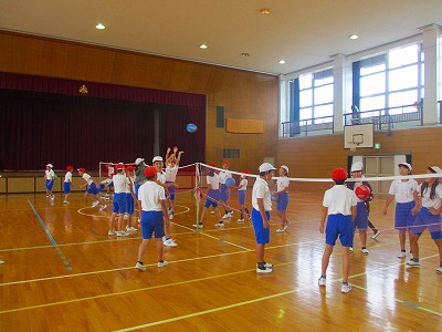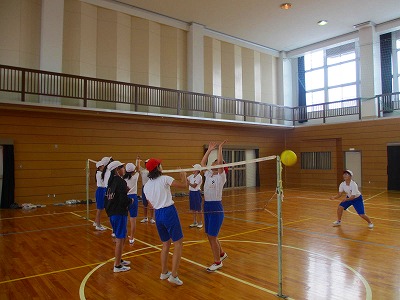 6年生がソフトバレーボールに取り組んでいました。レシーブをしてトスを上げ、最後はアタックを決めることを繰り返していました。
