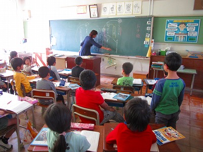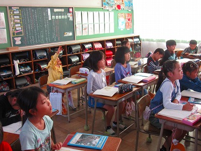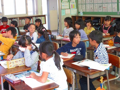 2年生が国語で「お手紙」を学んでいました。手紙を待ち続け、さみしさに心がいじけてしまうちょっぴりわがままで自分勝手ながまくんと、一生懸命相手に優しい言葉をかけるかえるくんの温かい友情を読み取っていきます。
