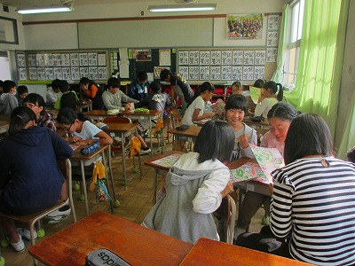 6年生が校外学習で訪れるリトルワールドの事前学習をしました。地図を見ながらどこに何があるのかをつかみ、回るコースを考えたり、どんな民族衣装を着たりするのか、各グループごとに楽しい相談をしていました。