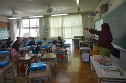今年度3年生の外国語活動については、教務主任とALTのウィリアム先生が担当することになりました。3年生の教室では「〇〇は好きですか?」という問いかけに、イエスかノーかを答えるジェスチャーゲームを行っていました。中には「さんかく!」という子どもも現れ、その答えに「なるほど!」と授業者の方が声を上げてしまう場面がありました。確かにそういう場合もありますよね。