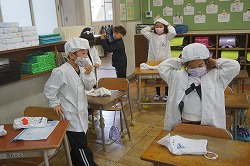 1年生は、担任の先生から給食の時間についての説明をしっかりと聞いて、順序良く準備をすることができました。