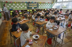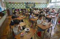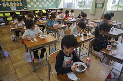 初めての給食を楽しそうに食べる姿が見られました。