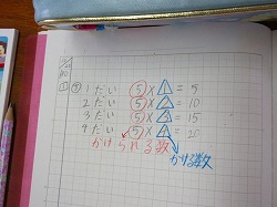 2年生の算数の学習が山場とも言えるかけ算九九に入りました。はじめは5の段からです。「かける数」と「かけられる数」の言葉の学習もしました。これから、2年生の終わりまでに九九をすべて唱えられるように繰り返し学習していきます。