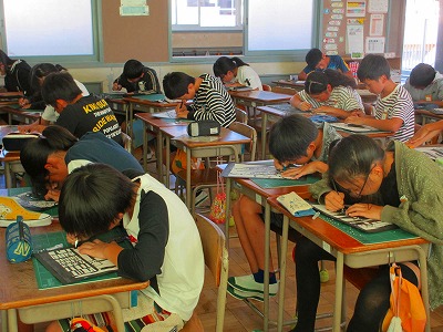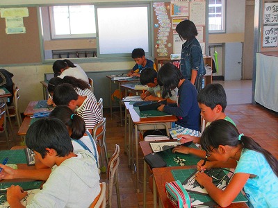 6年生が切り絵に取り組んでいました。カッターナイフの使い方がスムーズになってきました。細かい作業で集中力が高まっていました。