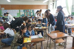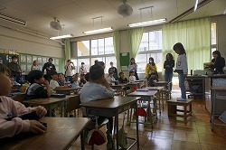授業参観では、あいうえおの学習や漢字の成り立ち、春を感じる言葉見つけなどそれぞれのめあてに向かって一生懸命に取り組んでいる姿が見られました。少し緊張しながらも先生や友達の話をしっかりと聞き、自分の考えを深めていました。保護者の方と一緒に考えている学級もあり、大いに盛り上がっていました。