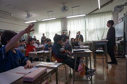 今年度3年生の外国語活動については、教務主任とALTのウィリアム先生が担当することになりました。3年生の教室では「〇〇は好きですか?」という問いかけに、イエスかノーかを答えるジェスチャーゲームを行っていました。中には「さんかく!」という子どもも現れ、その答えに「なるほど!」と授業者の方が声を上げてしまう場面がありました。確かにそういう場合もありますよね。