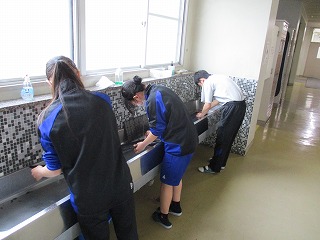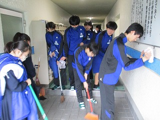 また、その後「奉仕活動」として、3年間を過ごした佐屋中学校への感謝と恩返しの気持ちを込めて、教室をはじめとする校内各所の清掃を行いました。