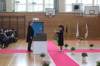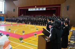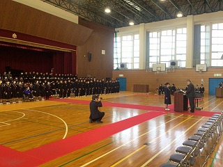 厳粛な雰囲気の中で式が進められ、卒業生一人一人に校長より卒業証書が授与されました。
