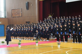 会の最後は、3年生代表よりお礼の言葉が伝えられるとともに、学年合唱で締めくくりました。