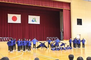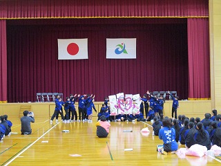 学級対抗競技や、立志の誓いの発表、学年合唱などを行いました。学年合唱は、限られた練習時間のなかで熱心に練習し、当日はすばらしい歌声をホールに響かせました。また、有志発表なども行うなど、皆笑顔で楽しく1日を過ごしていました。