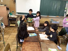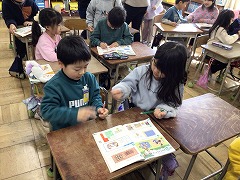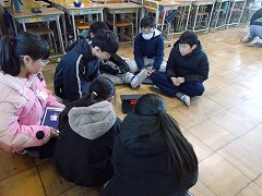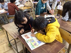 26日の発表の準備をしています。互いに見せ合いながら、アイデアを交換しました。授業参観を楽しみにしていてください。