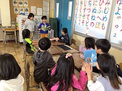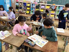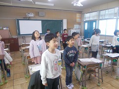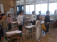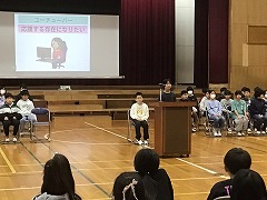 今日は、それぞれのクラスの発表を見せ合いました。発表を見て、「話し方がゆっくりだった」「気持ちがこもっていた」など良いところをたくさん見つけていました。本番に活かせるといいですね。