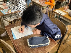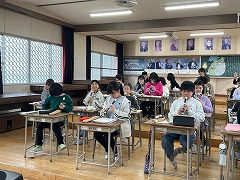 今年度最後の外国語活動を行いました。これまでの学習では、あいさつや自己紹介、好きなものを伝える表現など、さまざまな英語に親しんできました。子どもたちは、ジェスチャーを交えながら伝えようとしたり、友達の話を聞こうとしたりする姿が多く見られました。間違いを恐れずに声に出してみようとする姿から、この一年間の成長を感じることができました。
