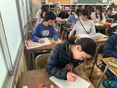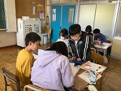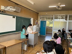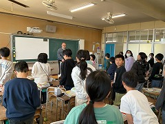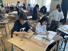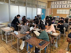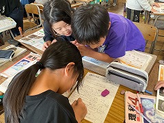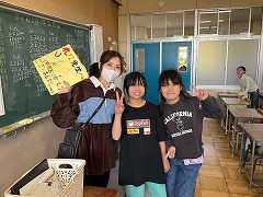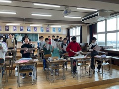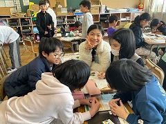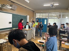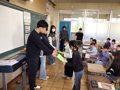 授業の最後には、これまでお世話になった先生へメッセージカードを渡し、感謝の気持ちを伝えました。笑顔あふれる、温かい時間となりました。これからも、外国語に親しみながら、伝え合うことの楽しさを感じていってほしいと思います。